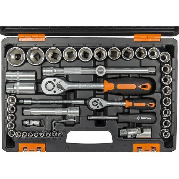 | Дополнительно в наборе, 1 / 2"DR | Удлинители 125, 250 ммадаптер 3-х сторонний, адаптер 5/16", карданный шарнир, ключ трещоточный |