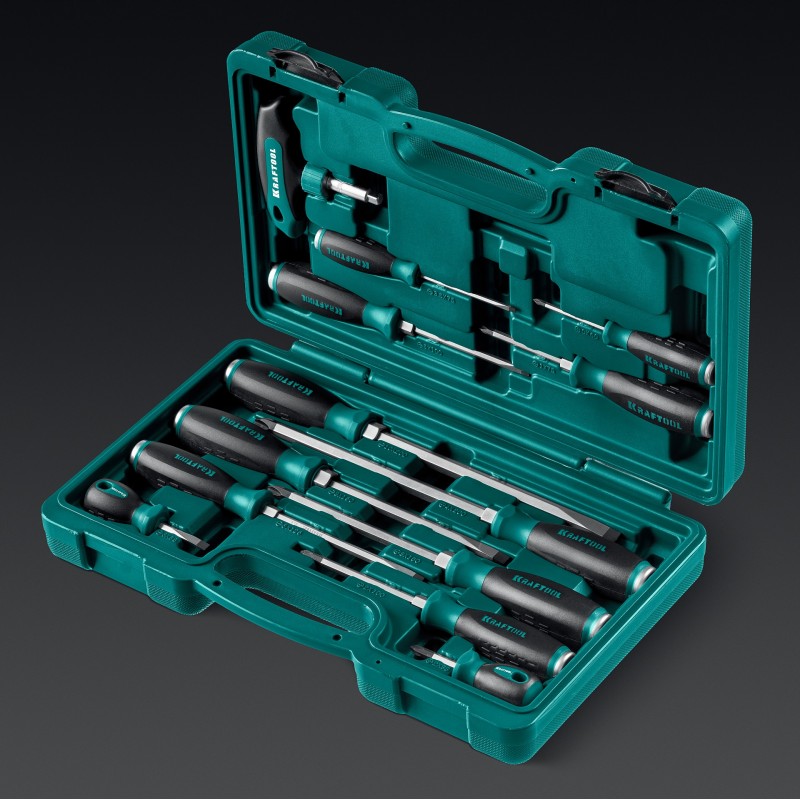 Набор ударных отверток KRAFTOOL IMPACT 13 шт сквозной стержень Cr-Mo [25035]