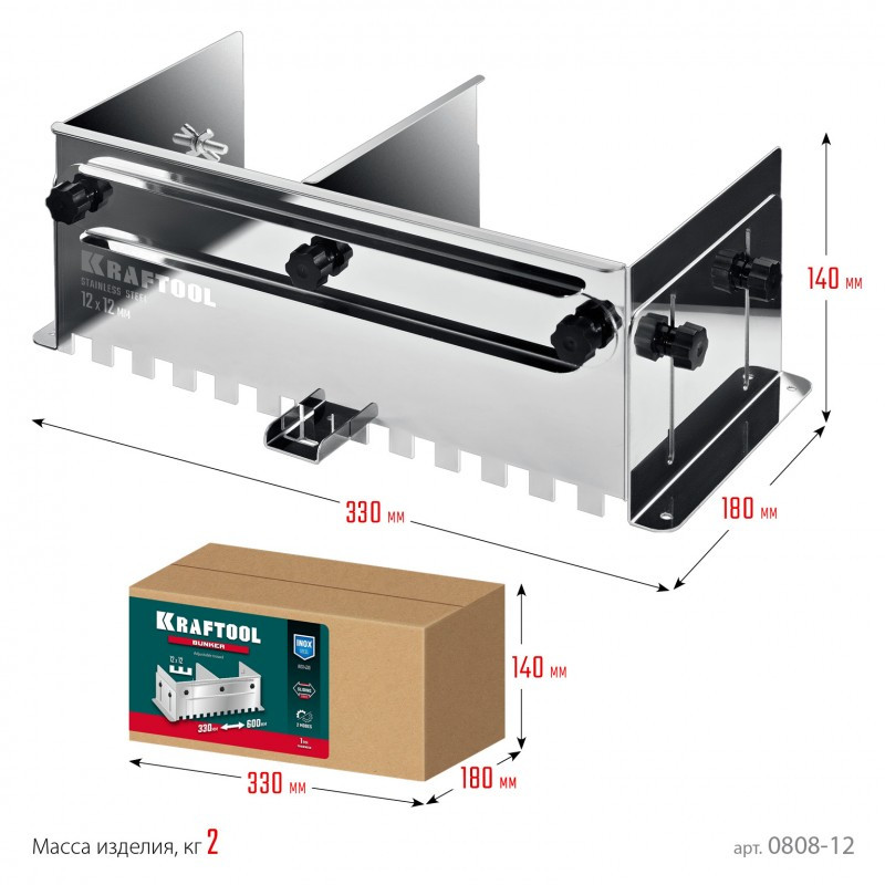 Раздвижная гребенка для плитки KRAFTOOL BUNKER зуб 12*12 мм до 600 мм, нерж. сталь [0808-12]