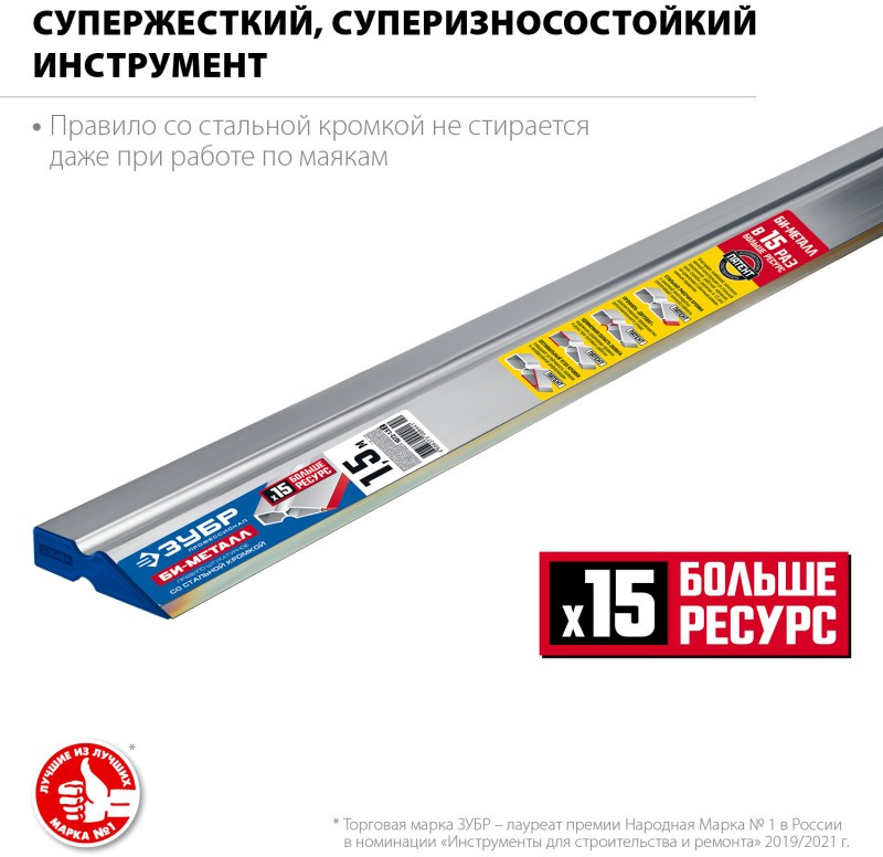 Благодаря новейшей запатентованной конструкции со стальной закаленной рабочей кромкой, срок службы увеличен в 15 раз по сравнению с обычным алюминиевым правилом