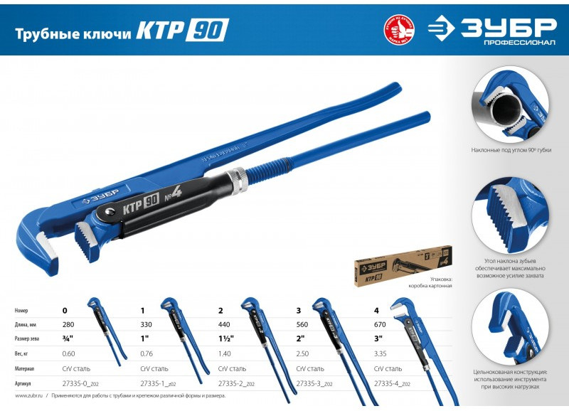 Ключ трубный Зубр КТР-90 №4 прямые губки [27335-4_z02]