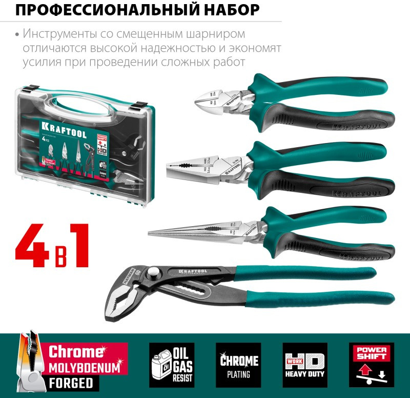 Набор губцевого инструмента KRAFTOOL 22012 4 предмета