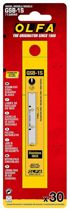 Прямые лезвия OLFA OL-GSB-1S 30 шт, GSR-1/3B GSR-2 для скребков 120 мм