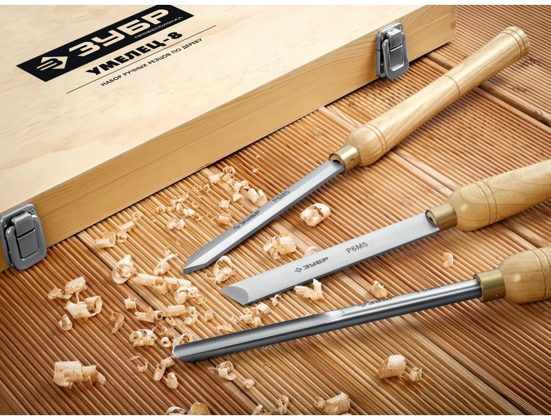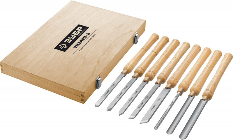 Набор ручных резцов по дереву Зубр УМЕЛЕЦ-8 8шт, Р6М5 [18374]