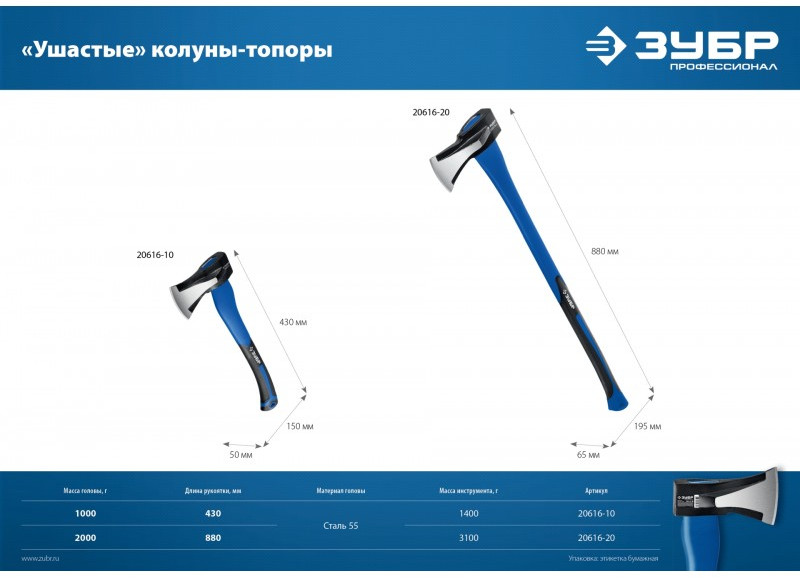 - "Ушастая" форма головы позволяет лезвию не застревать и эффективно раскалывать древесину