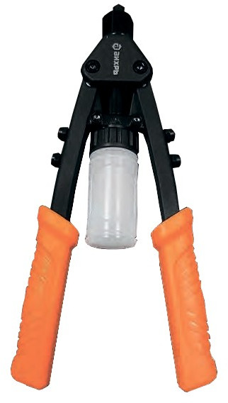 - Зажимной (цанговый) механизм снабжен регулятором хода, что увеличивает усилие и позволяет с легкостью работать с заклепками из стали и нержавеющей стали;