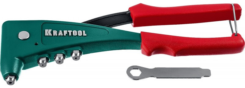 Заклепочник KRAFTOOL выдерживает высокие рабочие нагрузки и предназначен для установки заклепок из алюминия, стали и нержавеющей стали различных диаметров согласно таблице.