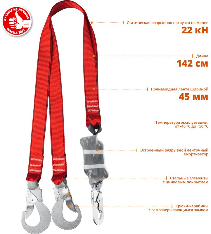 Строп страховочный двухплечный Зубр СЛА-2 капроновая лента, с амортизатором [11587]