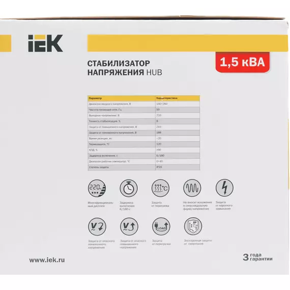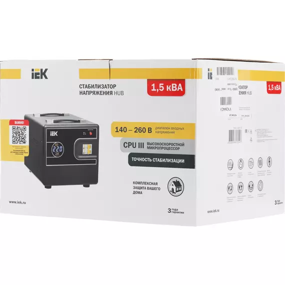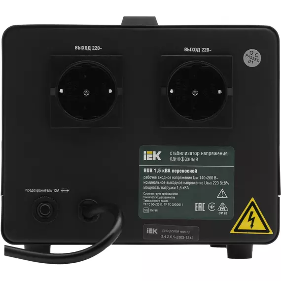 Стабилизатор напряжения IEK IVS21-1-D15-13 Hub 1.5кВА однофазный черный