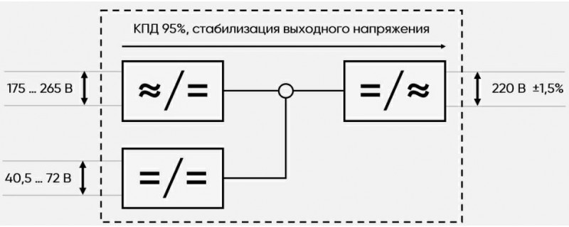 - КПД в режиме байпас, %: ≥95