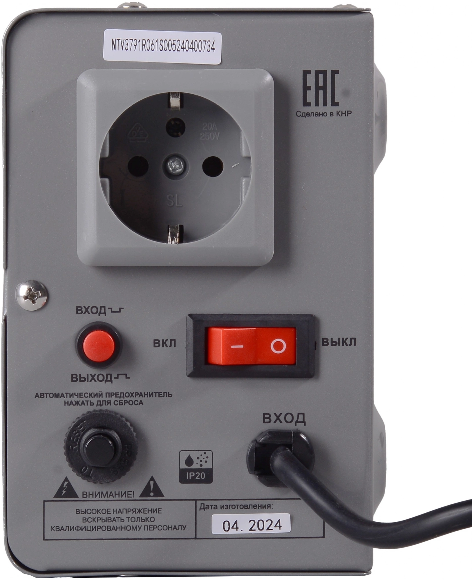 | Класс защиты корпуса | IP20 |