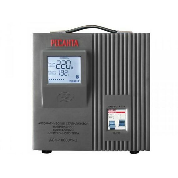 Однофазный электронный стабилизатор Ресанта АСН-10000/1-Ц оснащен микропроцессорным управлением, цифровым индикатором напряжения. На дисплее отображается входное/выходное напряжение.