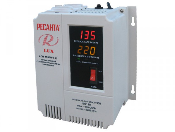 Однофазный цифровой стабилизатор Ресанта АСН-1500Н/1-Ц - это бытовой прибор, к которому можно подключить потребитель мощностью до 1500 Вт. Прибор обеспечивает сохранность потребителя в случае скачков напряжения в сети электроснабжения или при коротком замыкании. Стабилизатор АСН-1500Н/1-Ц стоит купить, ведь его можно разместить в любом удобном месте, например на компьютерном столе или на кухне, для подключения бытовой техники.
