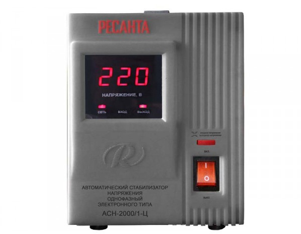 Однофазный электронный стабилизатор Ресанта АСН-2000/1-Ц оснащен микропроцессорным управлением, цифровым индикатором напряжения. На дисплее отображается входное/выходное напряжение.