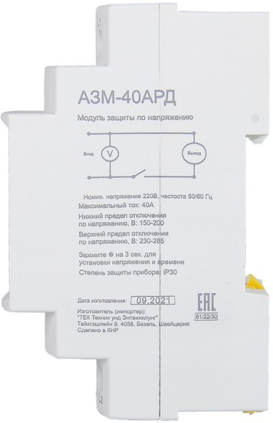 Блок защиты по напряжению РЕСАНТА АЗМ-40АРД регулируемый, с дисплеем