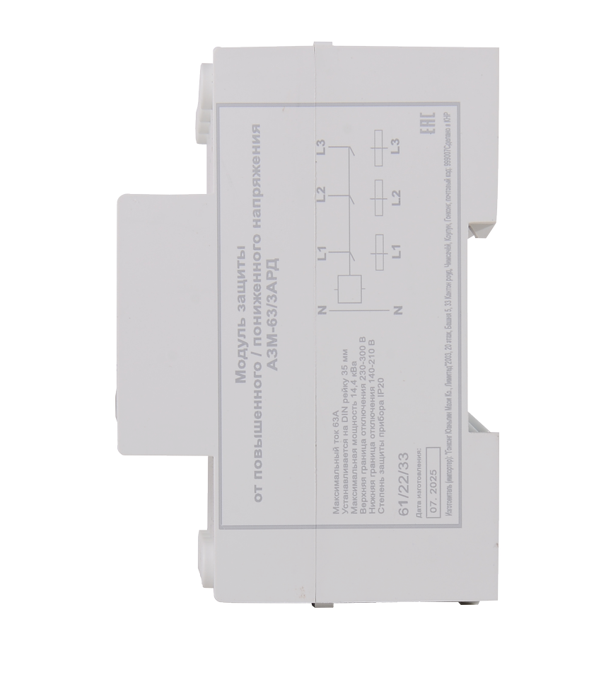 Блок защиты по напряжению РЕСАНТА АЗМ-63/3АРД регулируемый, с дисплеем