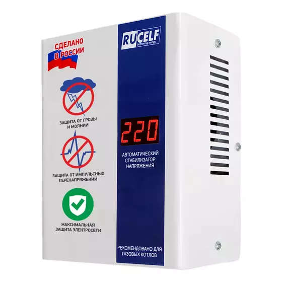 | Особенности | Rucelf КОТЁЛ это серия специализированных стабилизаторов напряжения, предназначенных для работы с котлами отопления. |