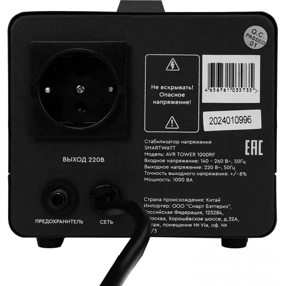 Стабилизатор напряжения Smartwatt AVR Tower 1000RF 1000ВА черный [4512020370002]