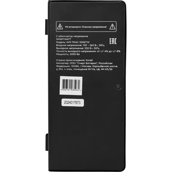 Стабилизатор напряжения Smartwatt AVR Triac 2000TW 2000ВА черный [4512020380003]