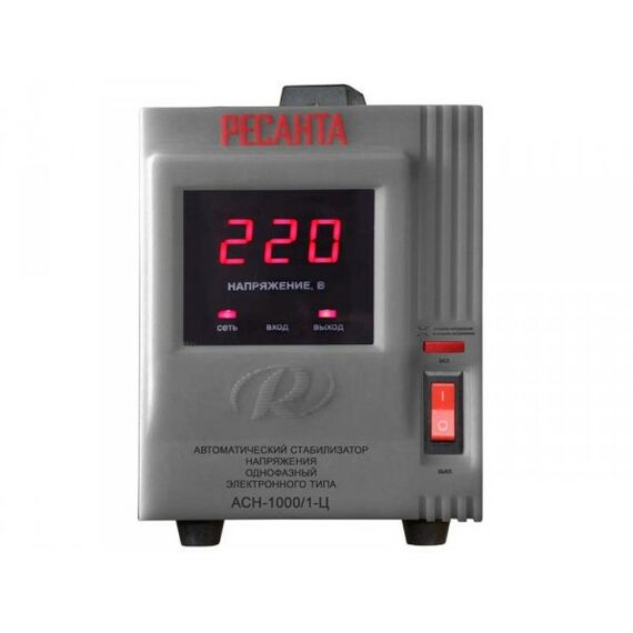 Однофазный электронный стабилизатор Ресанта АСН-1000/1-Ц оснащен микропроцессорным управлением, цифровым индикатором напряжения. На дисплее отображается входное/выходное напряжение.