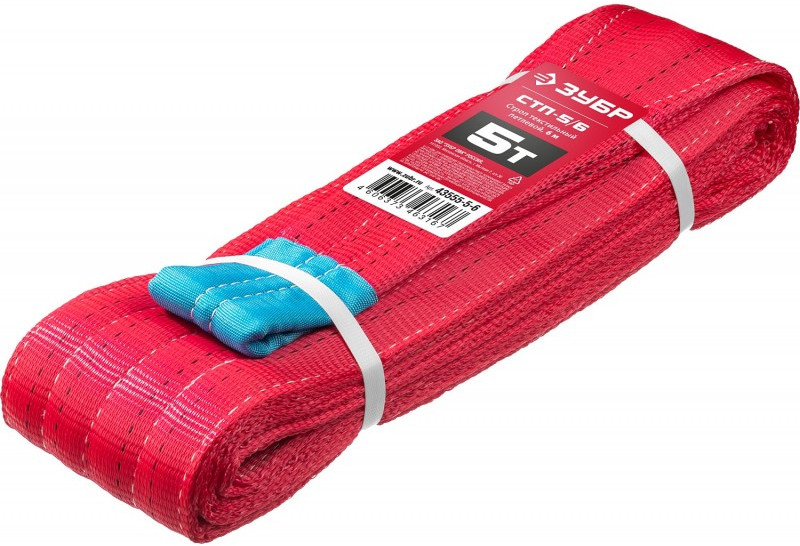 Текстильный петлевой строп Зубр СТП-5/6 красный, г/п 5 т, длина 6 м [43555-5-6]