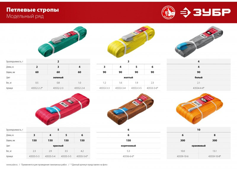 - Ленты для строп окрашены в свой цвет в соответствии с международным цветовым кодом.