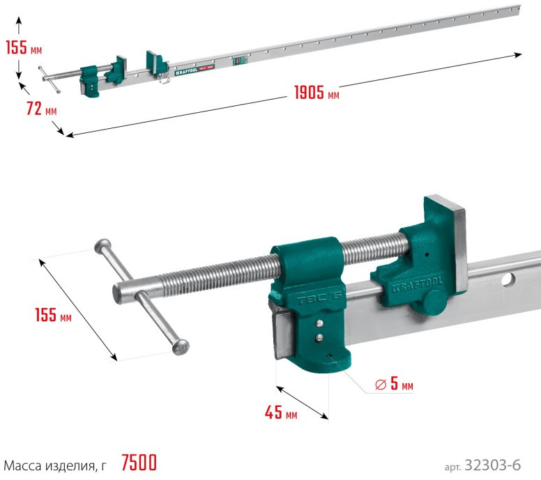 Струбцина с Т-образным профилем (вайма) KRAFTOOL TBC/6 1650/55 мм [32303-6]