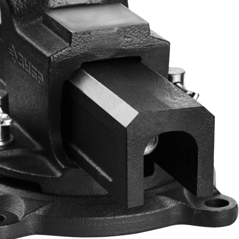 - Поворотное основание позволяет перемещать корпус тисков в горизонтальной плоскости на угол от 0 до 360 градусов
