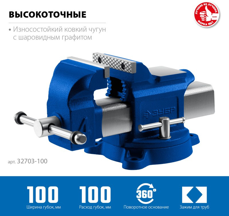 Высокоточные слесарные тиски Зубр Профессионал 100 мм [32703-100]