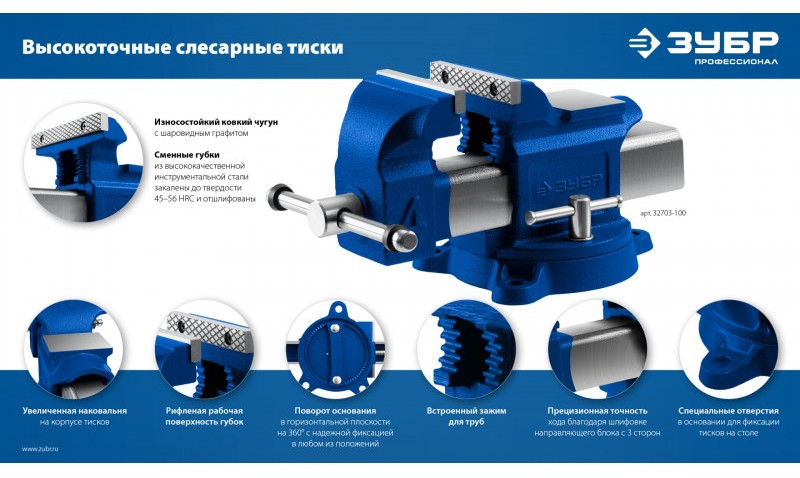 - Увеличенная наковальня на корпусе тисков для выполнения слесарных работ