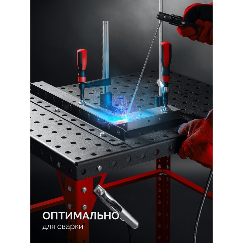 для проведения сварочных и сборочных работ, с возможностью фиксации деталей, позволяет производить сборку и сварку конструкций любой сложной конфигурации. Стол можно использовать как слесарный верстак, сборочно-сварочный стол, мобильный верстак или преобразовать его в станок.