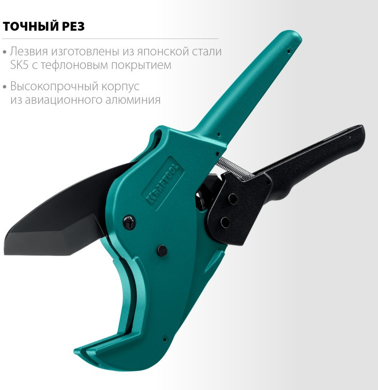 - Особенность №1: лезвие c V-образным острием предотвращает растрескивание труб из хрупкого пластика