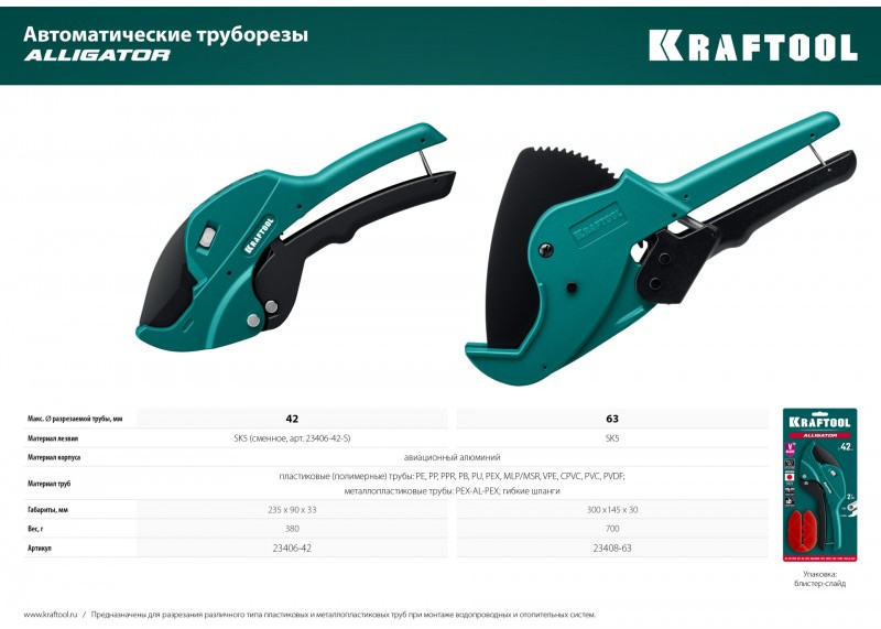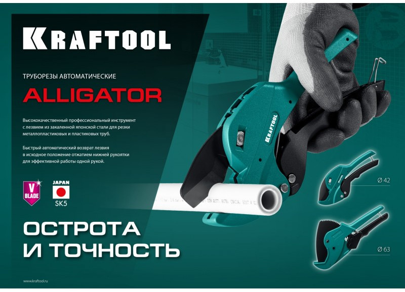 Автоматический труборез по металлопластиковым и пластиковым трубам KRAFTOOL Alligator-63 до 63 мм [23408-63]