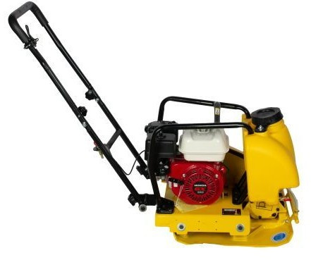 Складная ручка облегчает транспортировку виброплиты. В комплекте полиуретановой коврик для укладки тротуарной плитки и откидывающие колеса для комфортного перемещения по площадке, бак для воды и оросительная система для работы с битумосодержащими материалами.