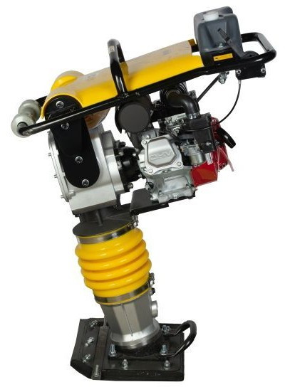 Вибротрамбовка TOR RM-80 (Honda) с мощным бензиновым двигателем Honda 5.5 л.с. Популярная модель вибротрамбовки с высокой силой удара 10кН по доступной цене. Амплитуда колебаний 40-65 мм и настраиваемая частота ударов 450-660 кол/мин оптимальны для уплотнения сыпучих грунтов, особенно щебня и песка. Используется для трамбовки грунта в труднодоступных местах и в условиях ограниченного пространства. Наиболее эффективна, если площадь уплотнения не превышает 10м2. С помощью вибротрамбовок укрепляют грунт вокруг колон, свай, труб а так же в углах, траншеях где не может работать более крупная техника, так же вибротрамбовки востребованы в дорожном строительстве и при проведении ремонтных работ.