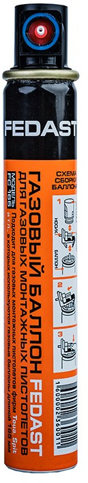 Газовые баллоны FEDAST для монтажных пистолетов различных производителей, таких как HYBEST, Toua, SPIT PULSA, Aiken, Hitachi, Lixie и др. Позволяет забить от 1000 гвоздей с одного баллона в зависимости от правильности эксплуатации газового баллона (см. инструкцию по эксплуатации на баллоне). Специальная смесь сжиженного газа и лубрикантов позволяет продолжительно использовать инструмент без смазки основных узлов.
