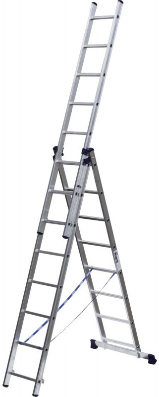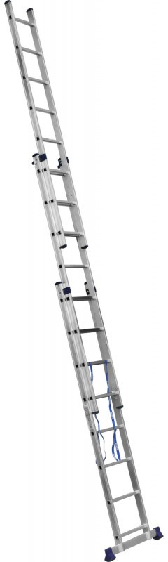Трехсекционная лестница СИБИН 38833-08 8 ступеней, со стабилизатором, алюминиевая