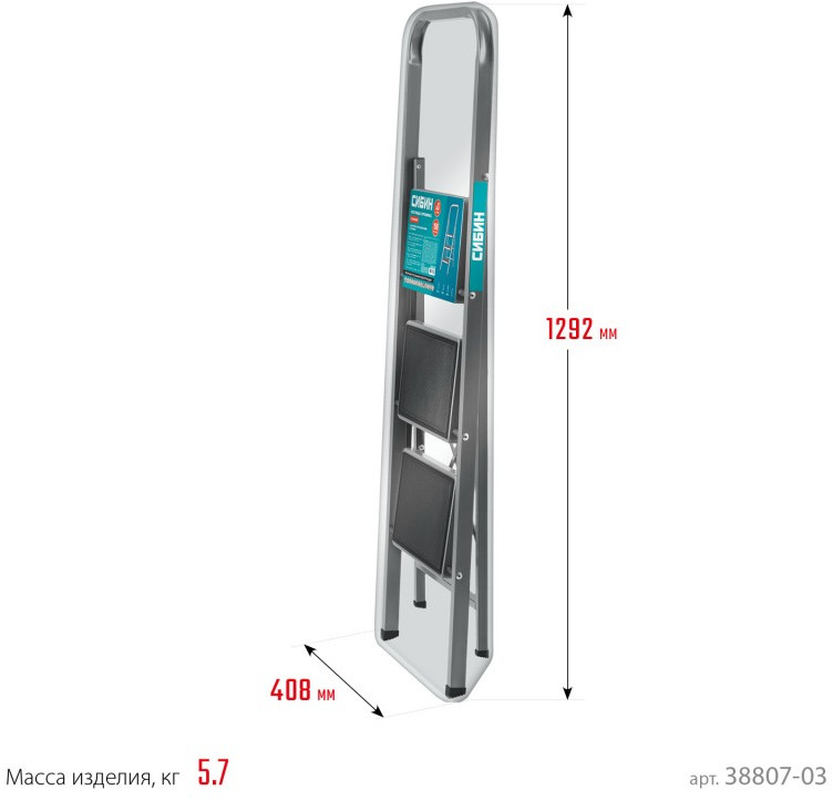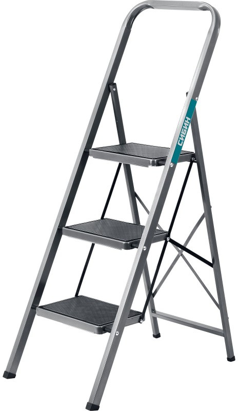 Стальная стремянка СИБИН 38807-03 3 ступени, 71 см, c широкими обрезиненными ступенями