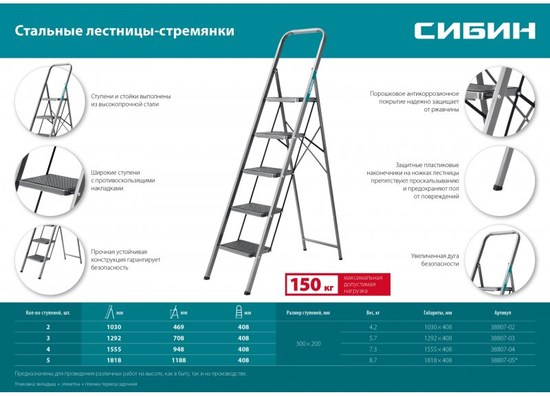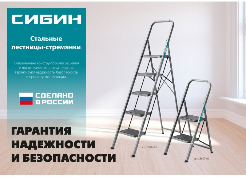 Лестницы СИБИН – надежная конструкция в сочетании с высококачественными материалами обеспечивают легкость и удобство в эксплуатации.