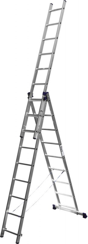 Трехсекционная лестница СИБИН 38833-09 9 ступеней, со стабилизатором, алюминиевая