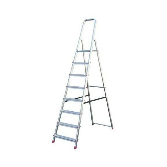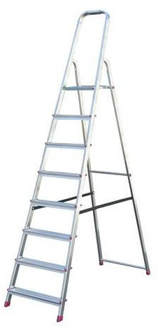 Стремянка алюминиевая ВИХРЬ СА 1х8 широко применяется в быту. Корпус изготовлен из алюминия, что облегчает транспортировку. Односекционная модель с широкими ступенями с рифленой поверхностью и рабочей площадкой. Чтобы стремянка не скользила, на опорах оборудованы заглушки. Также есть дуга безопасности. В сложенном состоянии модель очень компактна и занимает мало места.