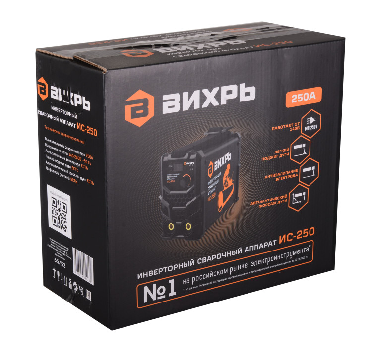 Сварочный аппарат инверторный Вихрь ИС-250 предназначен для ручной дуговой сварки штучным покрытым электродом на постоянном токе и электродом с рутиловым и основным покрытием (режим ММА).