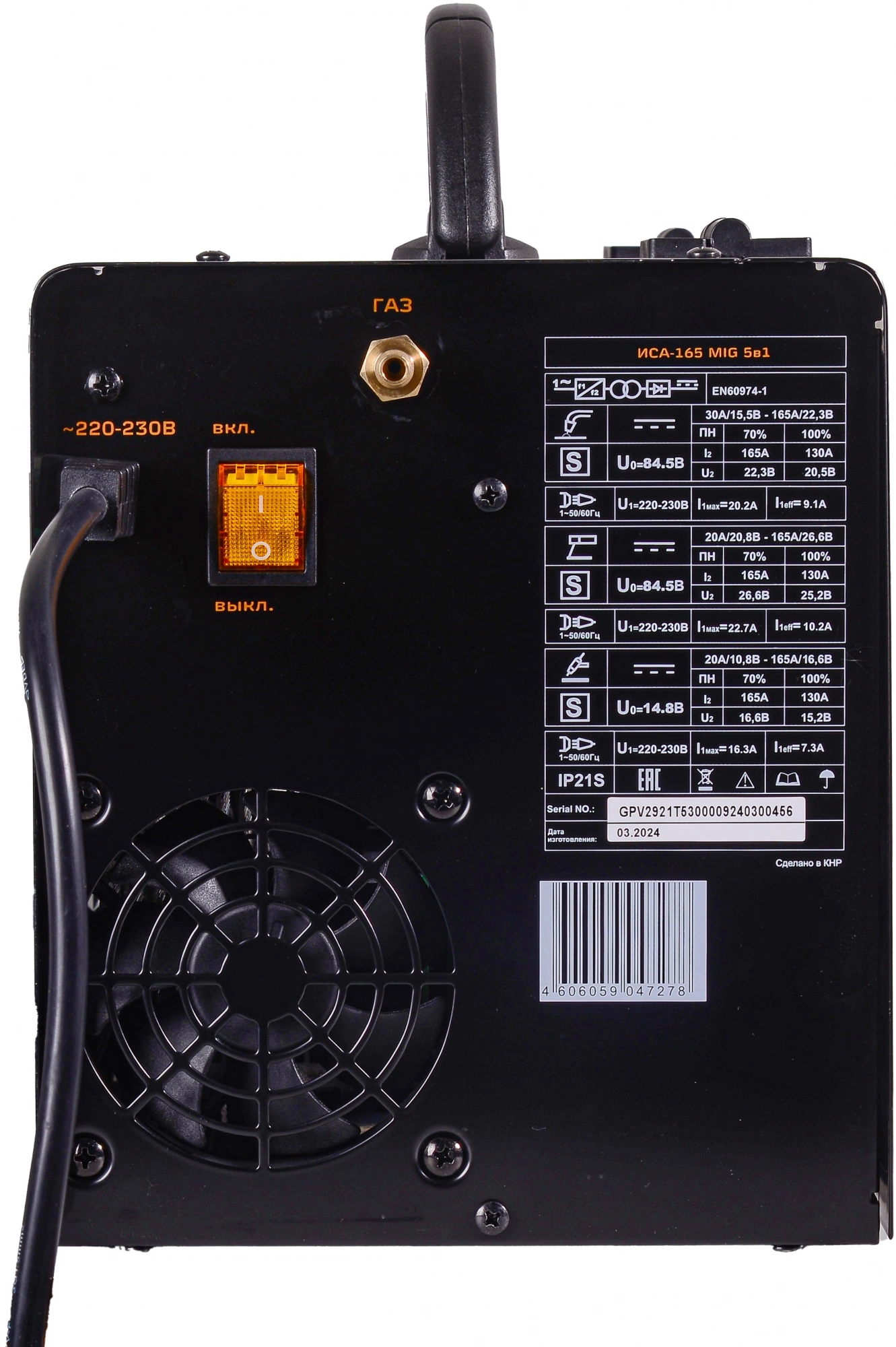 | Сварочный ток, макс | 165 A |