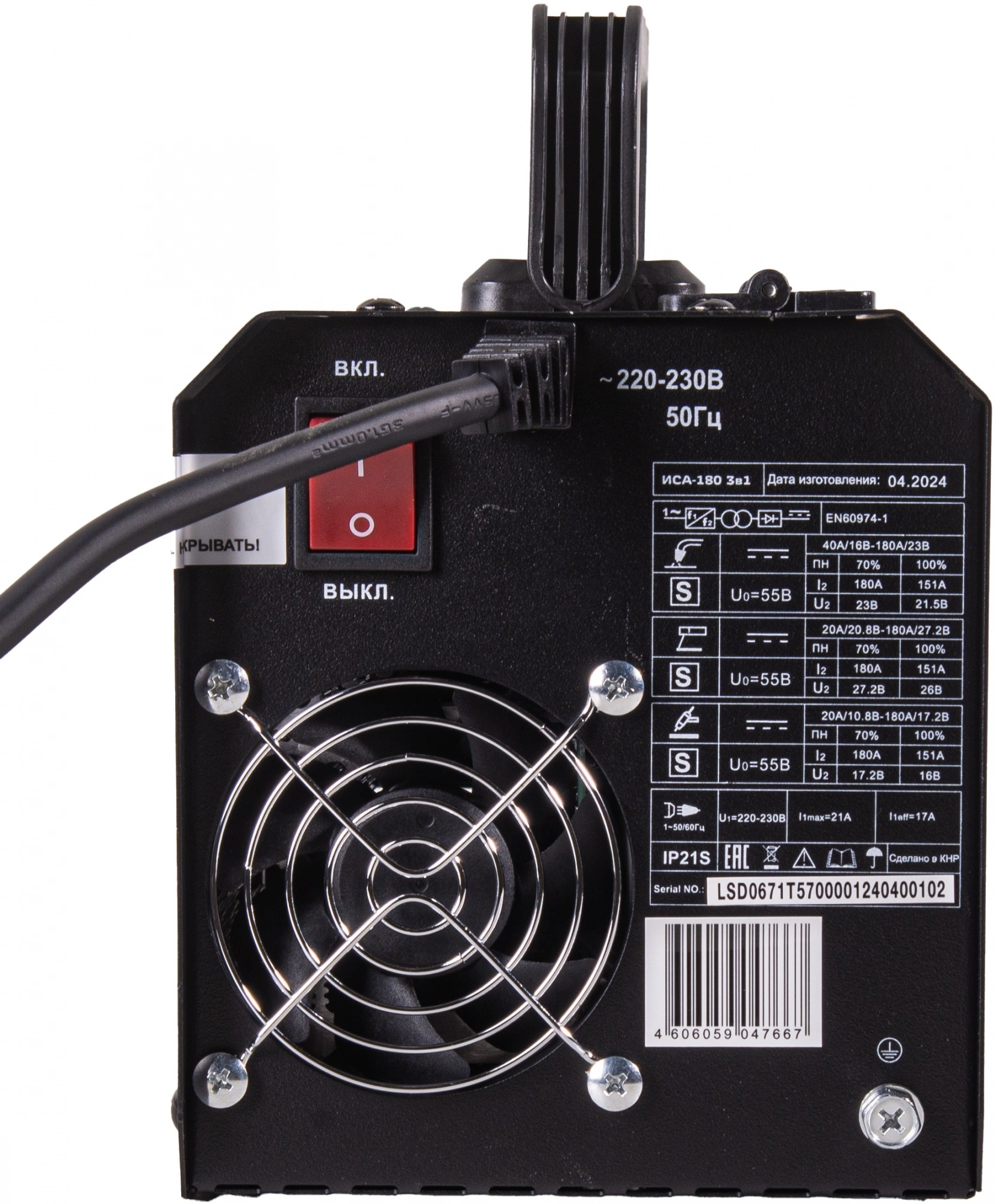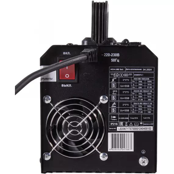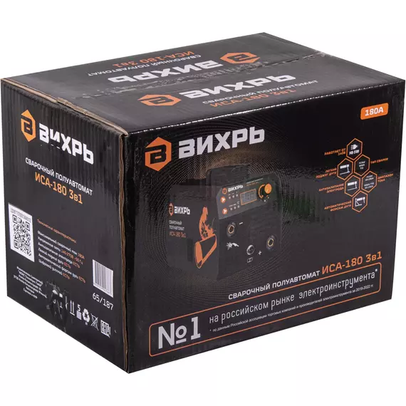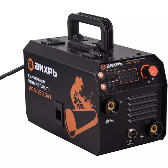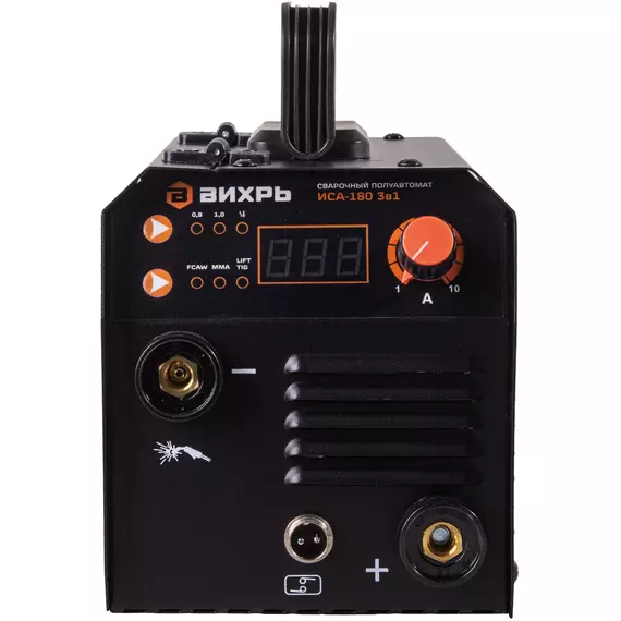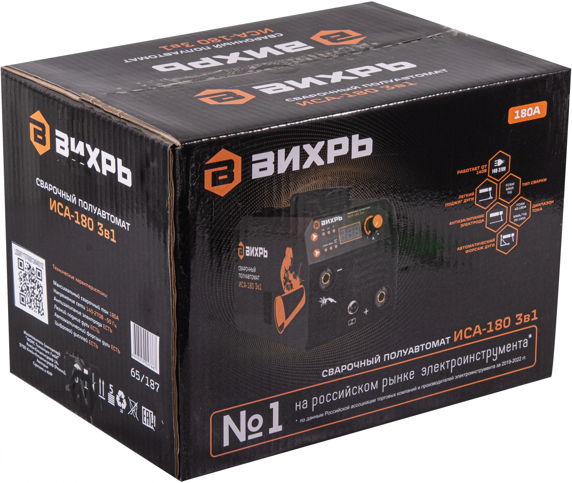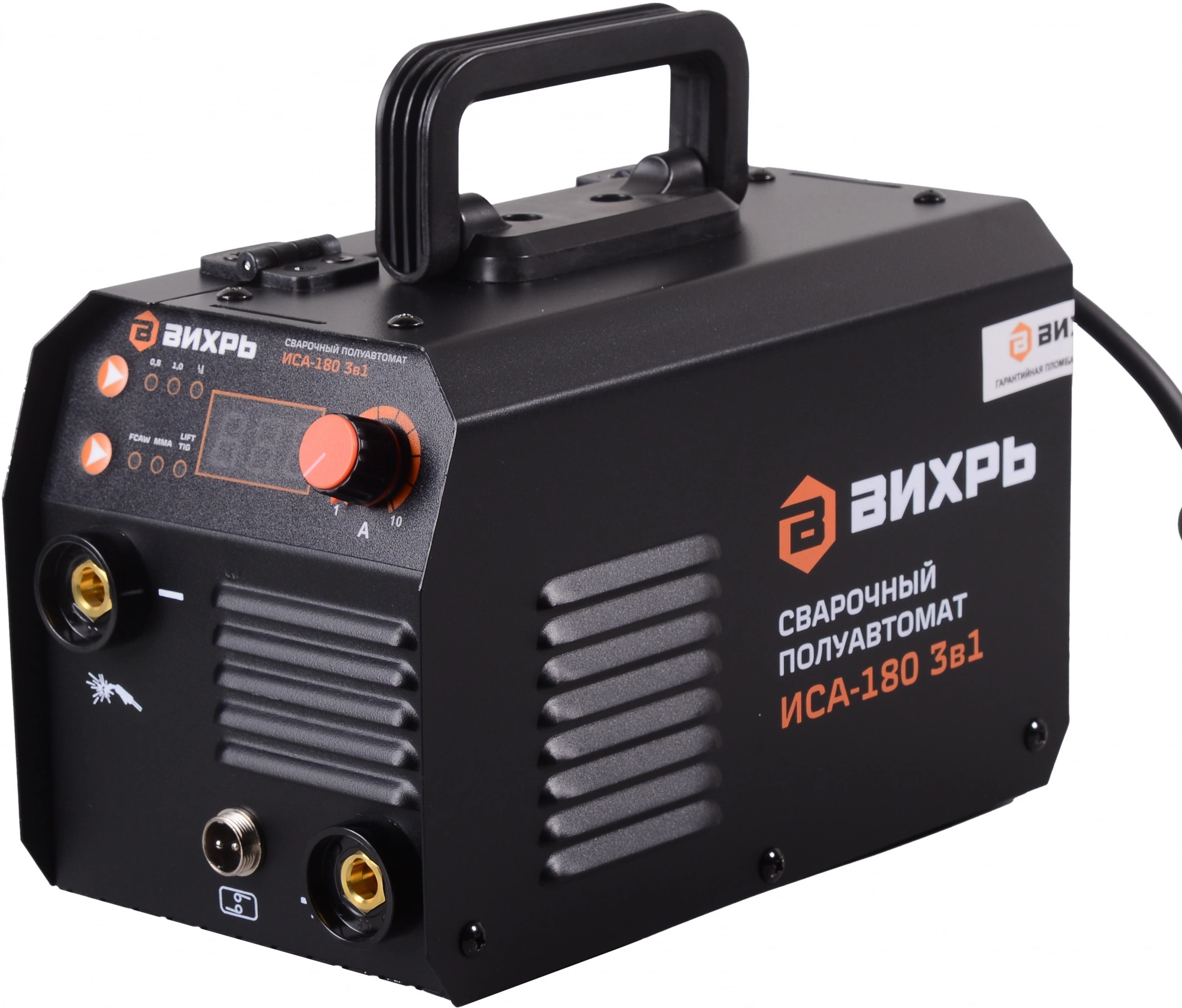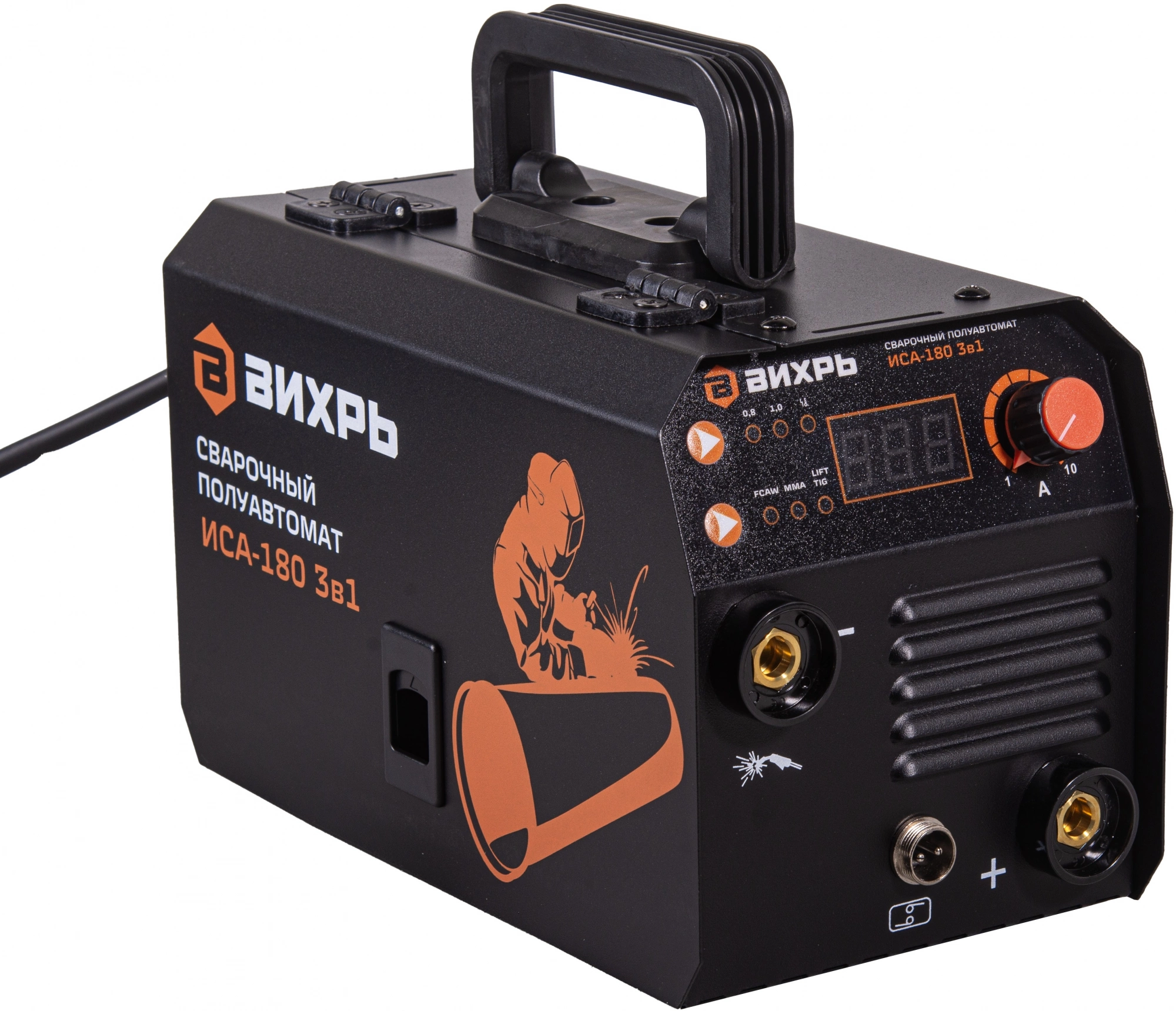 Сварочный полуавтомат Вихрь ИСА-180 3в1 инвертор, полуавтомат, FCAW, ММА, TIG, 140-270, 20-180, ПВ - 70%