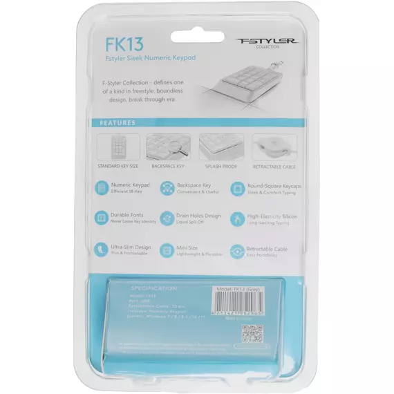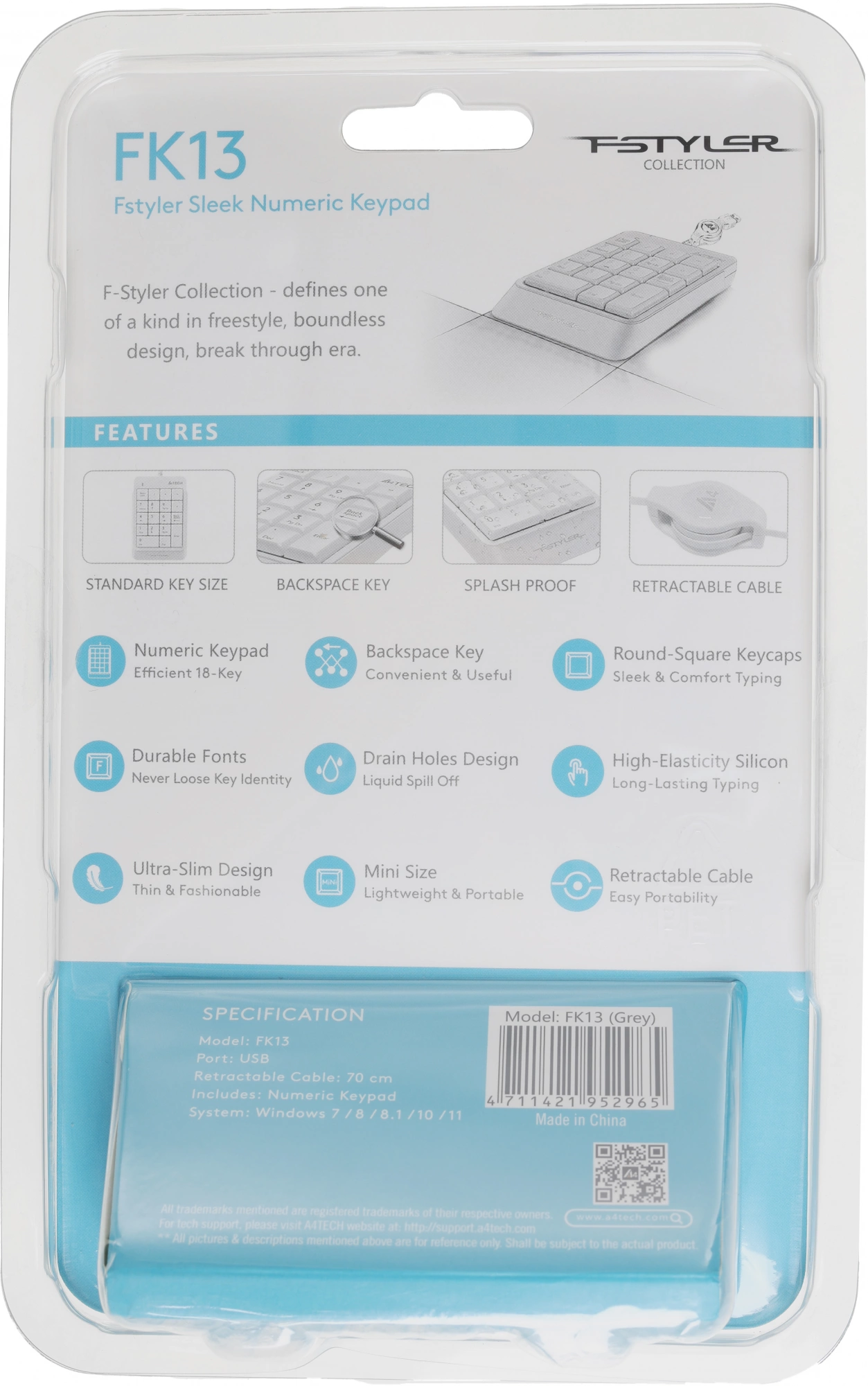 Числовой блок A4-Tech Fstyler FK13 GREY серый USB slim для ноутбука