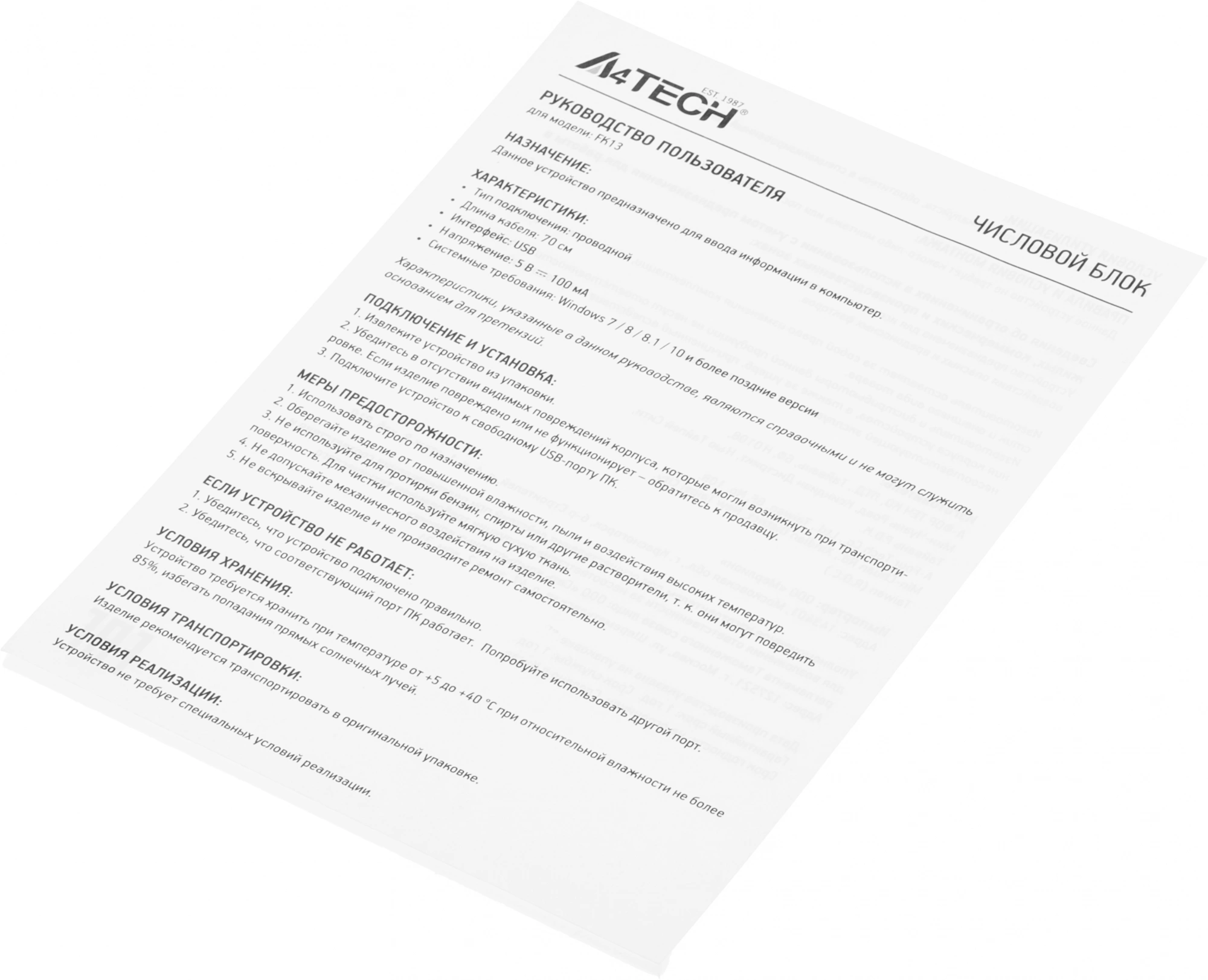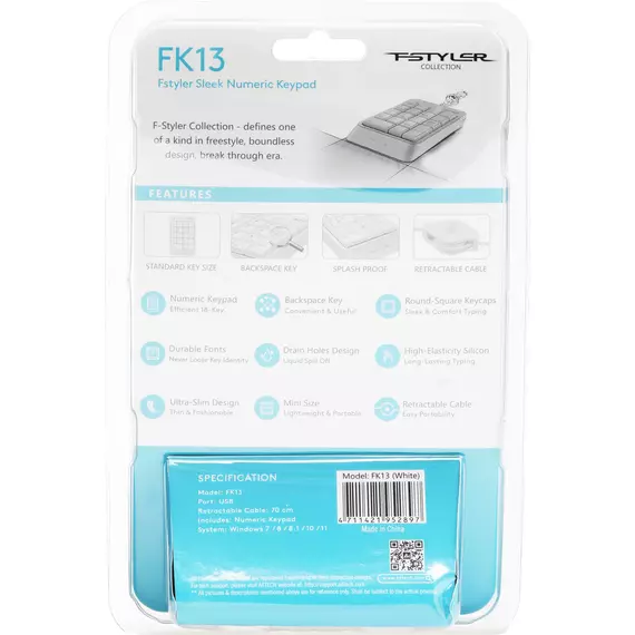 Числовой блок A4-Tech Fstyler FK13 WHITE белый USB slim для ноутбука