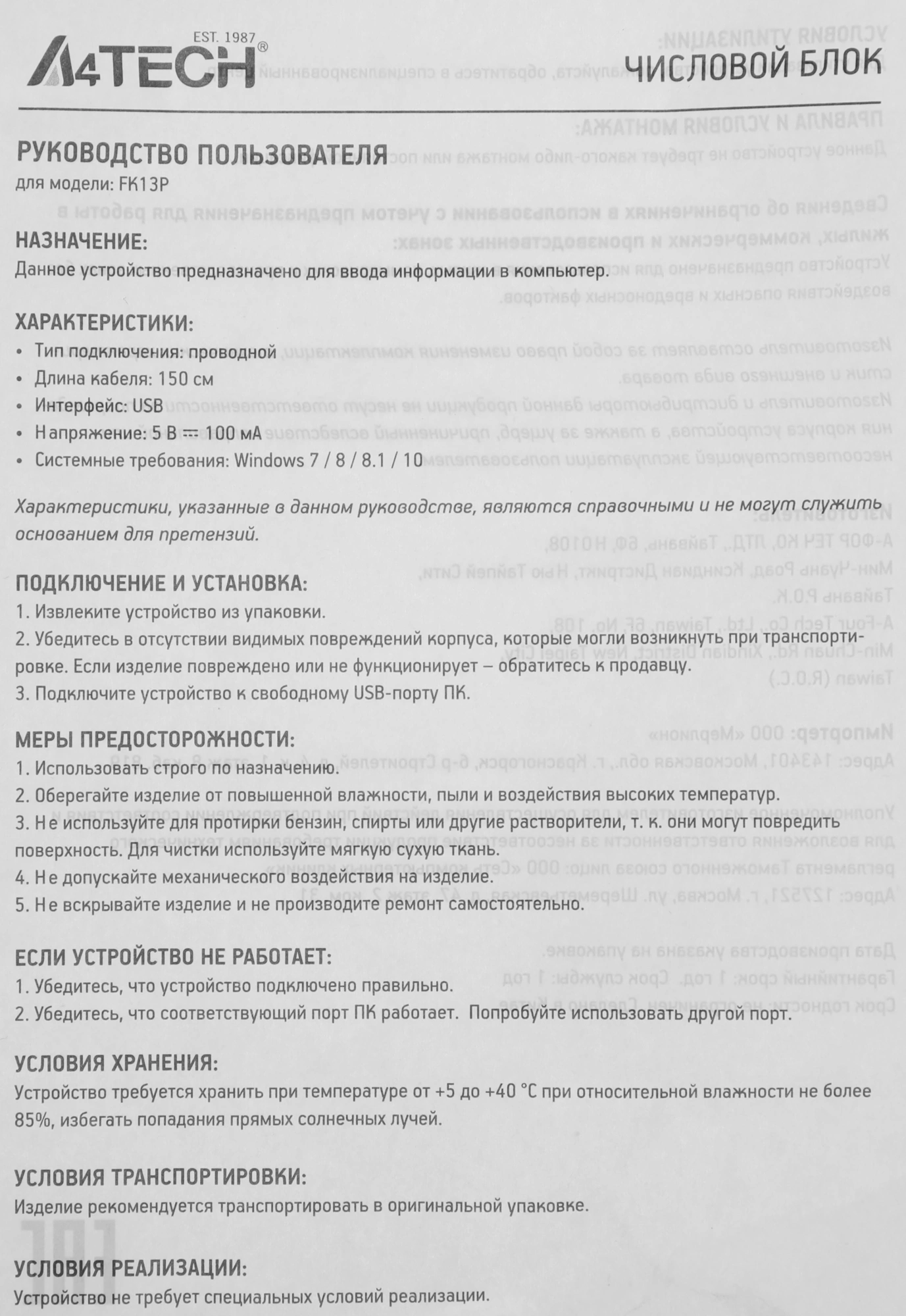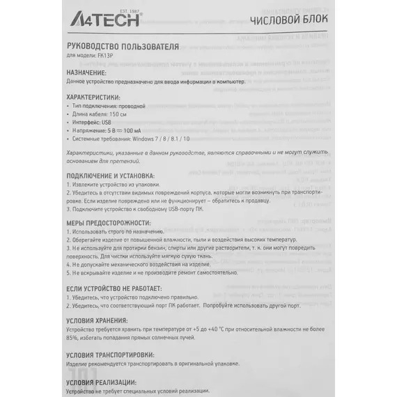 Описание A4-Tech Fstyler FK13P BLACK