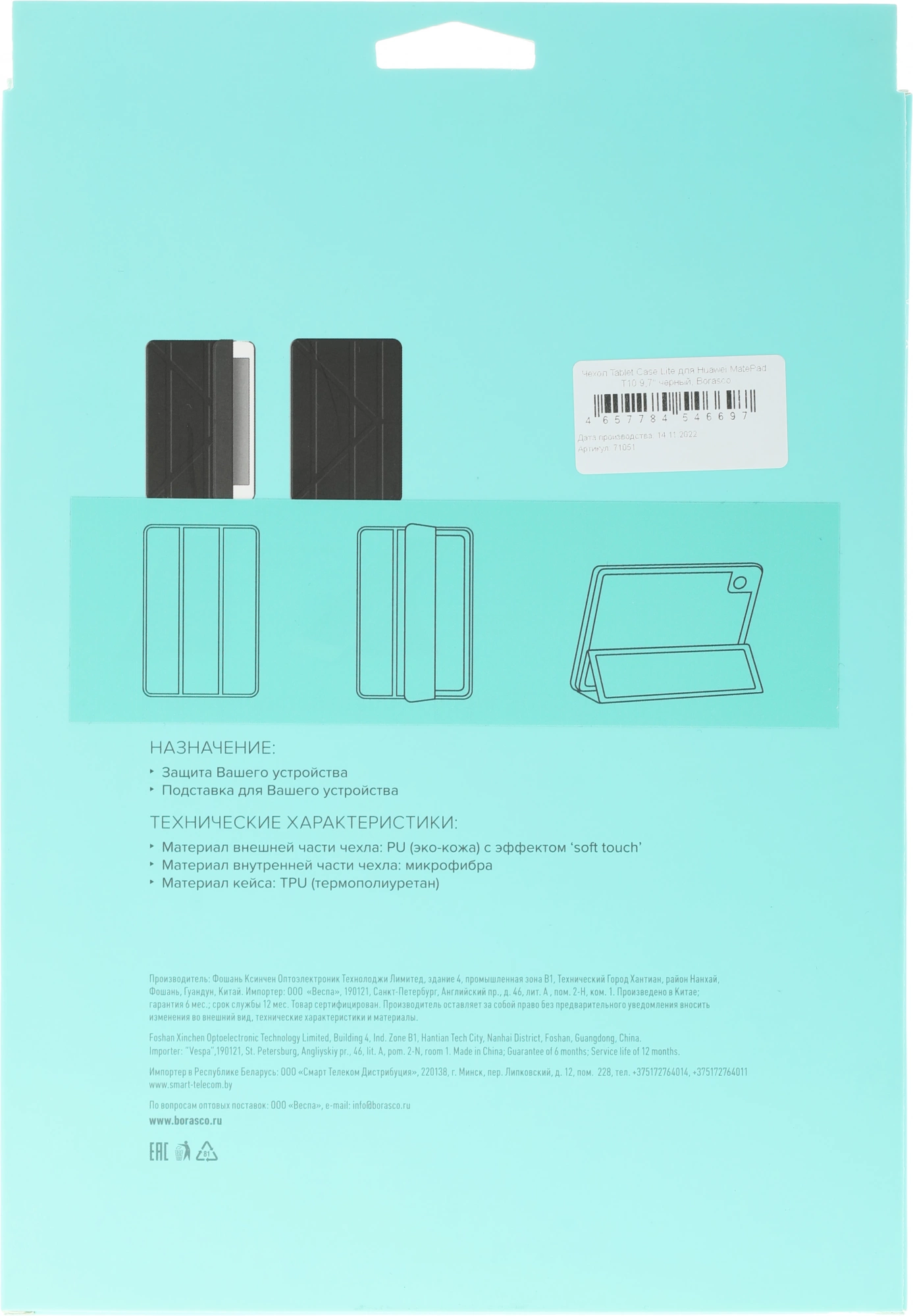 Чехол BoraSCO 71051 для Huawei MatePad T10 9.7" Tablet Case Lite термопластичный полиуретан черный