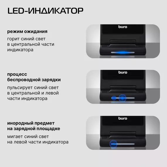 Беспроводное зарядное устройство Buro CWC-QC5 15W 3A (QI) USB-C универсальное черный [CWC-QC5A15BK]