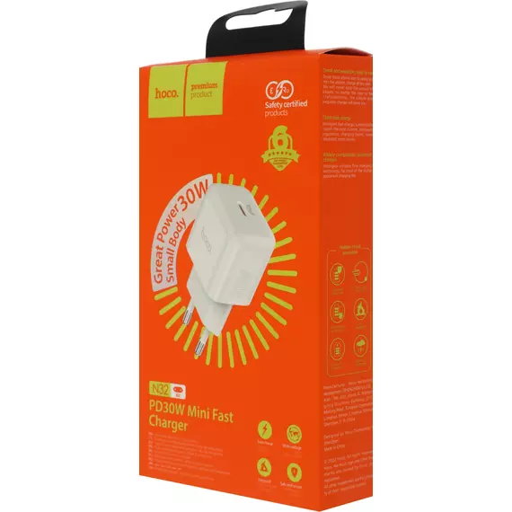 Сетевое зар./устр. Hoco N32 Glory White 30W 3A+2A+1.5A (PD+QC+AFC) USB Type-C универсальное белый